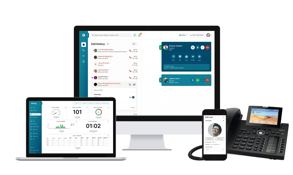 Le niveau supérieur correspond aux solutions UCaaS (Unified Communications as a Service), proposées notamment par des acteurs comme Dstny. Ici, la téléphonie s’intègre dans une plateforme cloud qui centralise appels, messagerie et parfois visioconférence. Les entreprises gagnent en pilotage grâce à des fonctionnalités avancées : distribution intelligente des appels, supervision des lignes, statistiques ou routage automatique. Cette approche améliore donc clairement la gestion de la relation client et la collaboration interne.